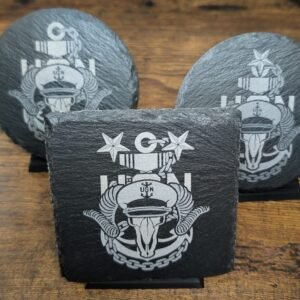 US Navy Chief Slate Coaster | Goat Skull & Anchor Design